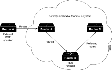 In Figure 28, Router A is being configured. The internal BGP neighbor is not directly linked to Router A. External neighbors (in autonomous system 167 and autonomous system 99) must be linked directly to Router A.